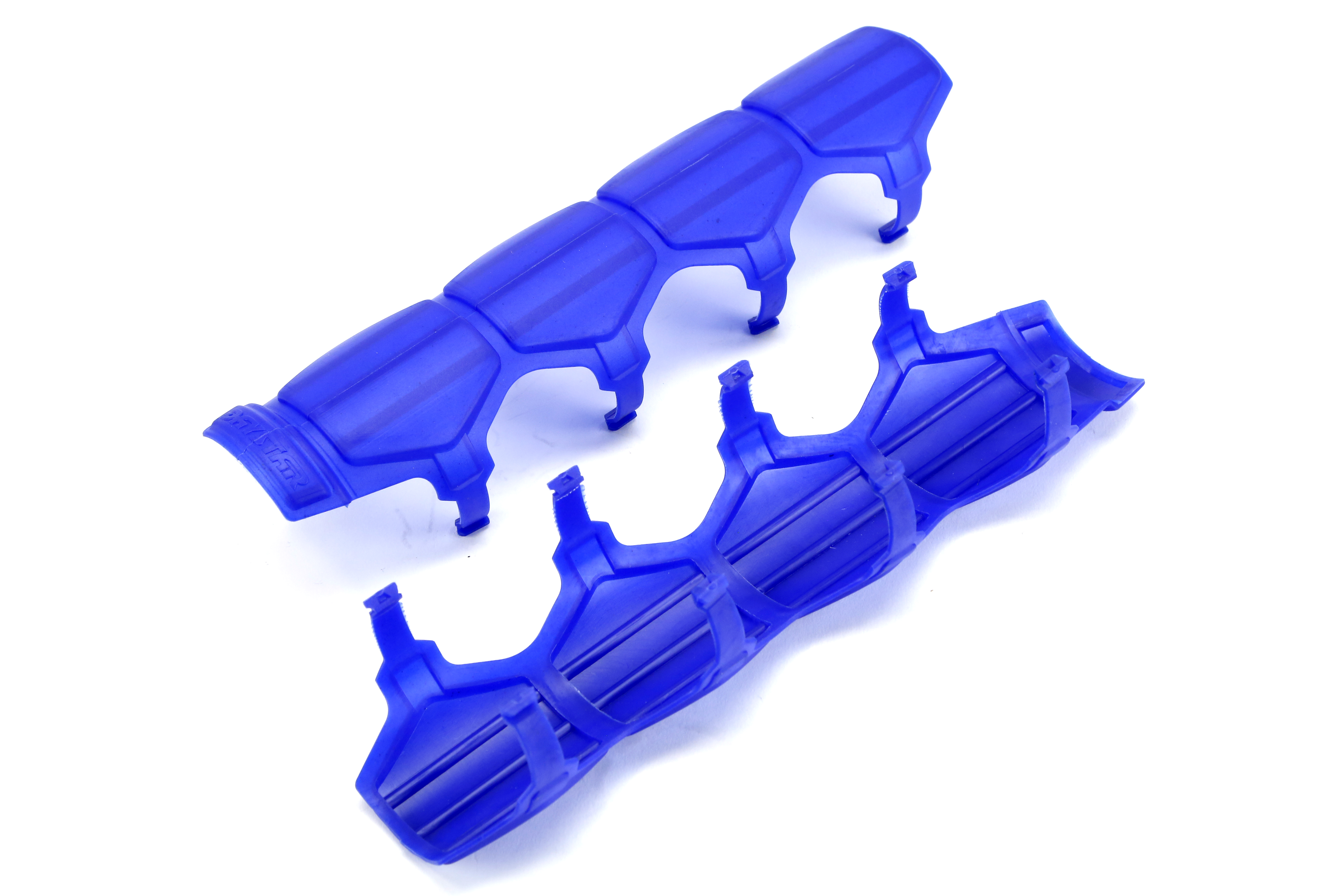 This particular Shock and Steering Stabilizer Armor comes in the blue finish.