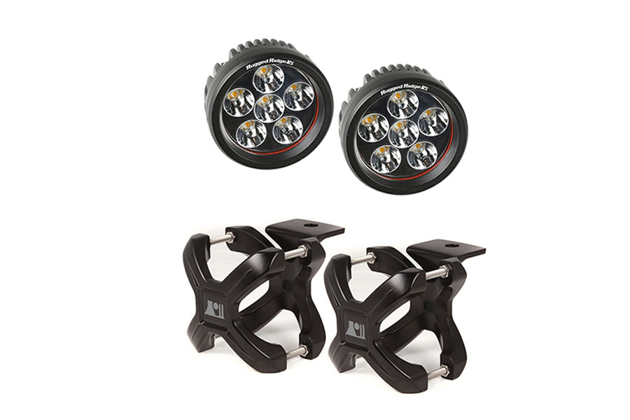 Rugged Ridge X-Clamp & Round LED Light Kit, Black, Small