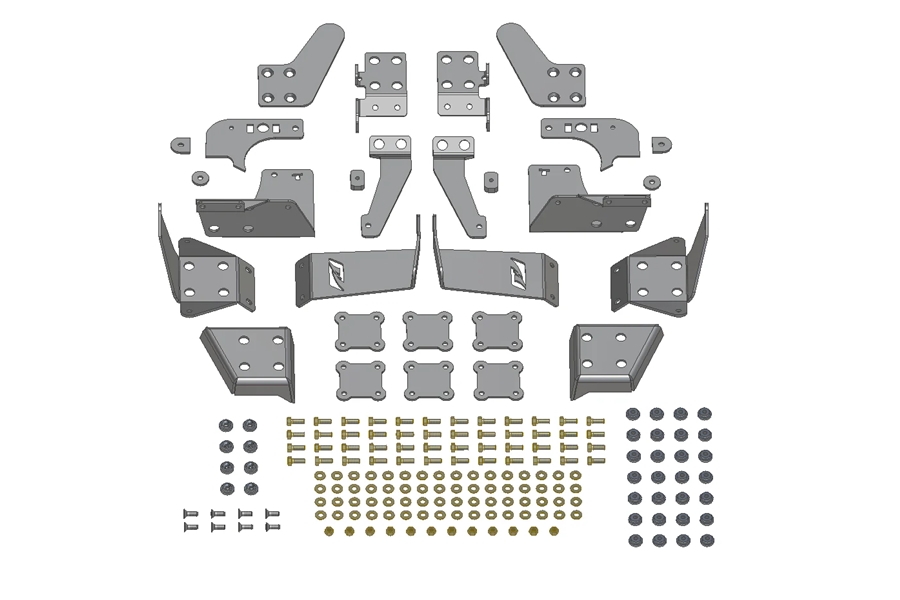 This premium Builder Kit includes 28 specially designed plates that precisely set all of the difficult starting points for fabricating your own tubular cage. All connections allow you to design & build your cage then unbolt it from the vehicle using our unique machined threaded weld nuts. This allows you to completely remove your cage for final welding, powder coating or painting.