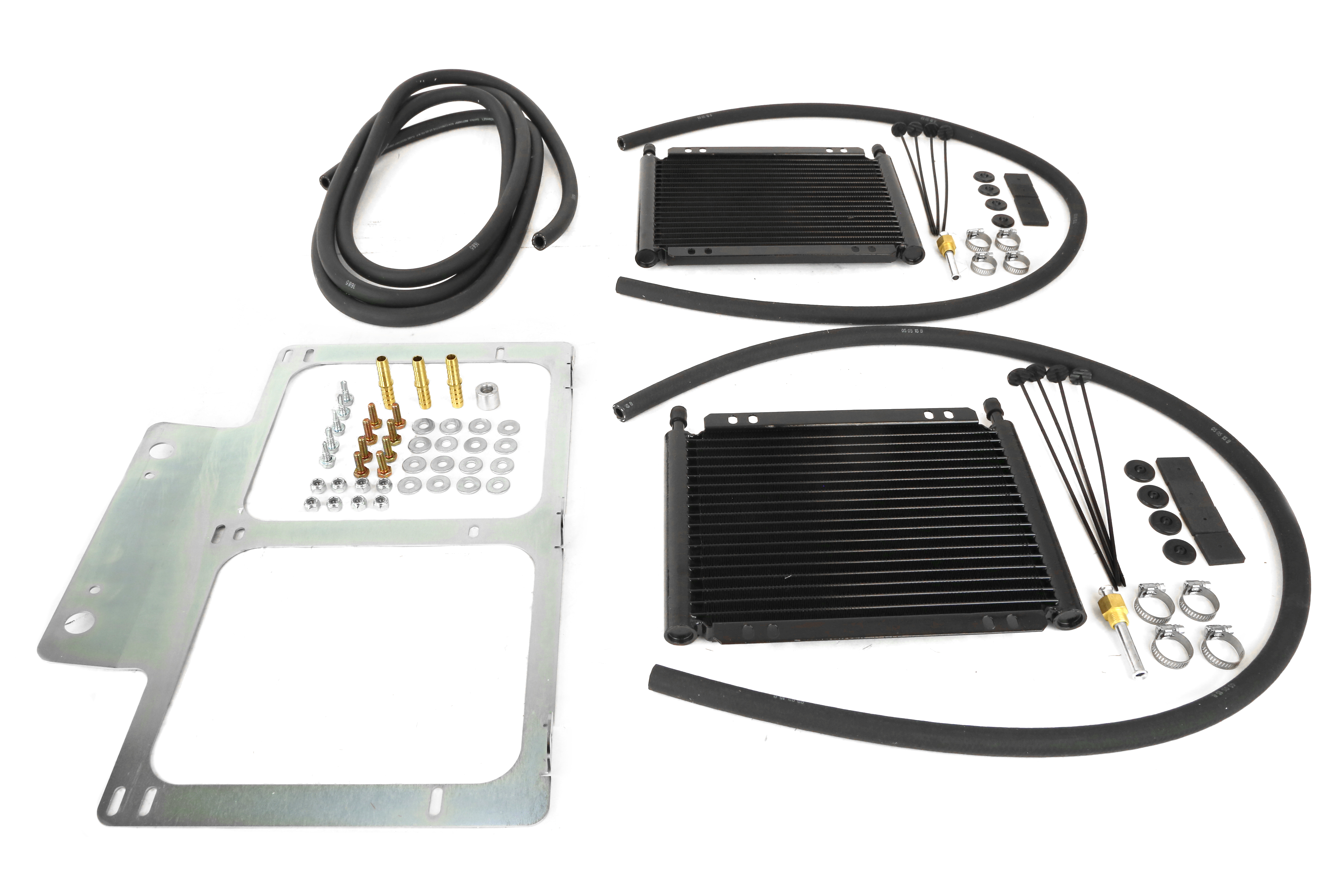 The bracket hosts a pair of oil coolers in a state-of-the-art design that sits in front of the radiator just behind the grill. This kit includes all the necessary hardware, and hose needed for a complete installation. And if that is not enough, the bracket has an option to add an additional cooler to help with transmission cooling.