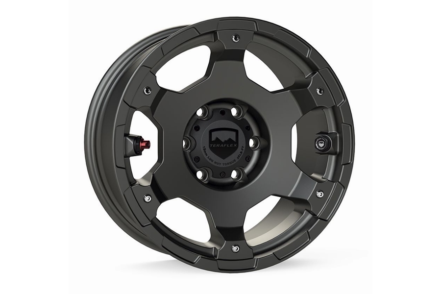 Round out your build with a set of these tough and durable TeraFlex Nomad Off-Road Wheels. These cast alloy wheels feature a reinterpretation of the classic six-hole design. Engineered with a form follows function" philosophy resulting in a technical look. With its modular plug system the TeraFlex Nomad Off-Road Wheel is the only wheel compatible with our all-new proprietary Air Deflator Valve that allows you to quickly air down your tires to a preset pressure. An adjustment screw allows you to set the preset pressure at any psi as low as 10 psi.