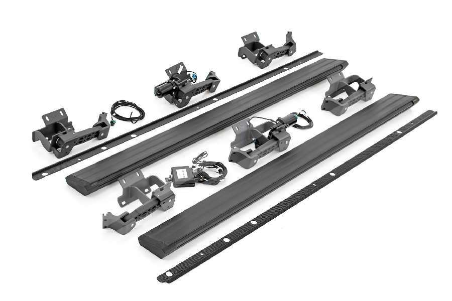 Rough Country’s RETRACT Electric Running Board Steps offer you a sleek, modern way to climb into your cab. These durable electric side steps feature a motorized “swing-out” function that instantly extends the step when you open the door. The convenient drop profile allows for easy entry and works great on trucks from stock height to any size lift. Once the door closes, the step automatically tucks away for a clean look.