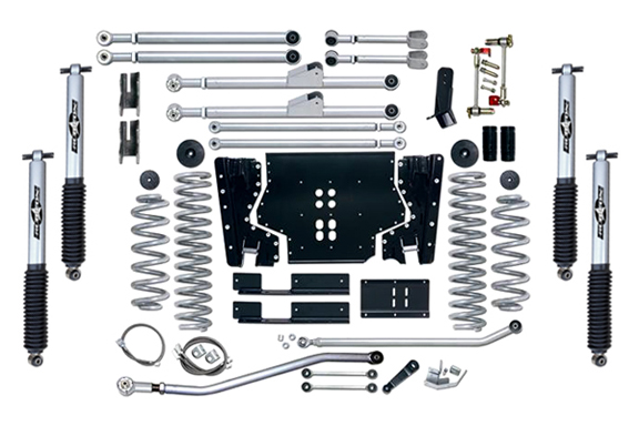 Rubicon Express was the first to comercially offer a long arm suspension system for the Jeep TJ. Our Extreme-Duty Long Arm system set the industry standard by which all other kits have been measured. It is designed to be a complete suspension replacement, which utilizes longer control arms to improve lifted suspesnion geometry. This system will offer you superior stability on and off road, reduced torque roll, and enhanced trail traction over standard short arm lift systems. The Rubicon Extreme-Duty Long Arm suspension system includes a three-piece belly pan for easy transfer case and transmission access. Our TJ Extreme-Duty Long Arm suspension System is the best performing and most technologically advanced system of its kind; there is no better long arm suspension system available for your TJ. The first and still the best..