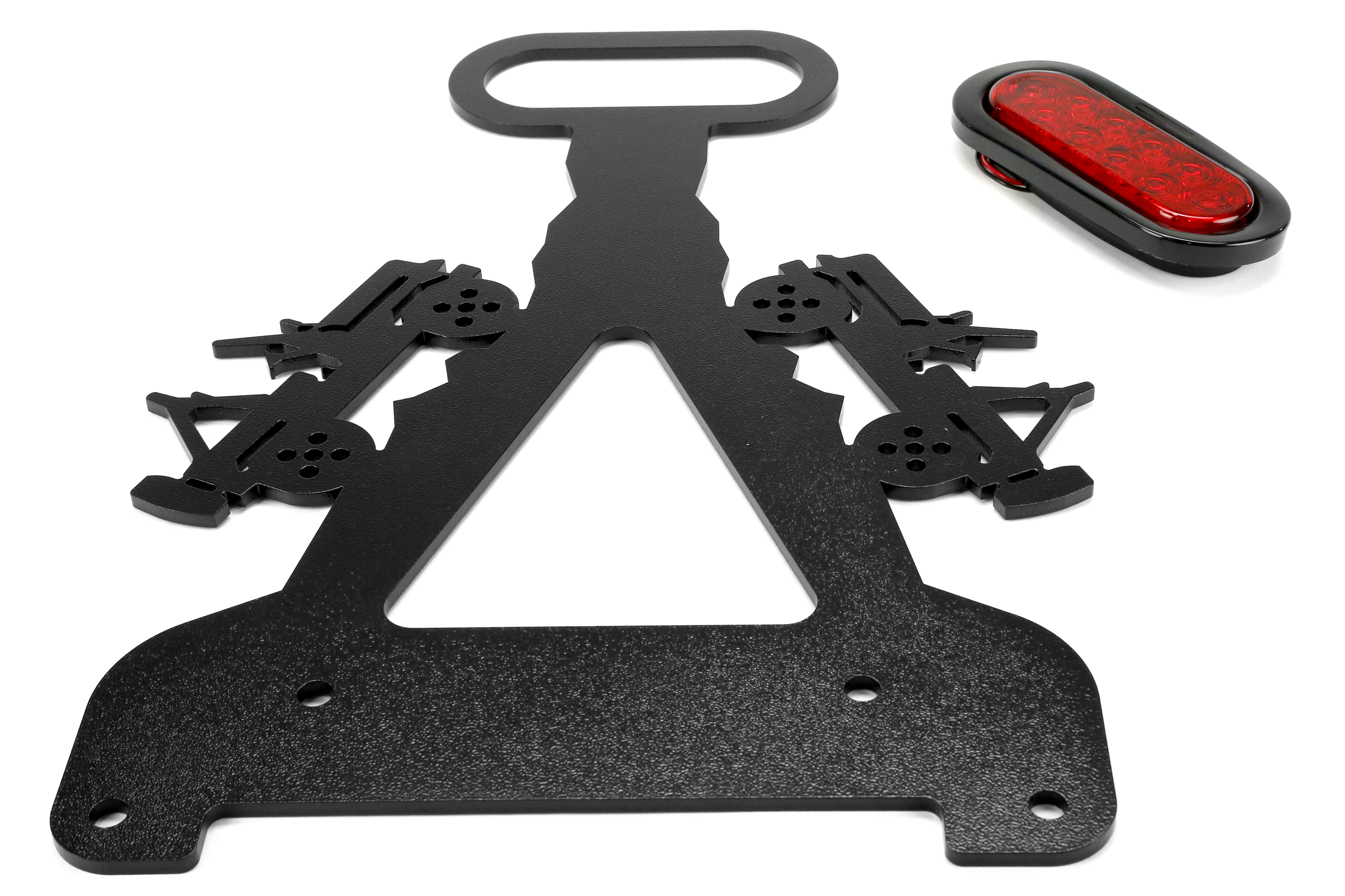 The bracket has been crafted from ¼” heavy duty aluminum, and has been powder-coated a clean black finish that will blend in, and is weather resistant. Additionally the brackets feature a pair of Jeeps for a fun look.