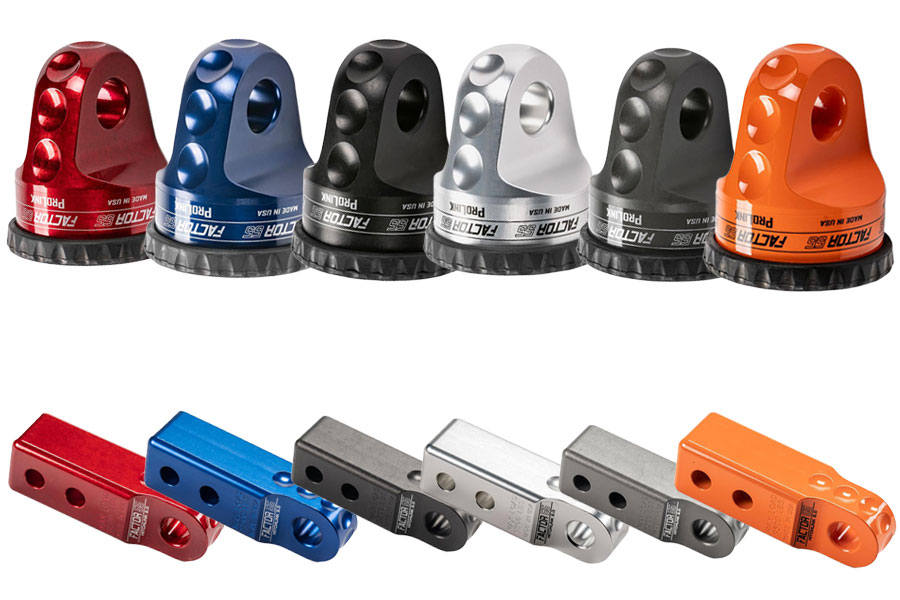 The new Prolink shackle from Factor 55 can replace standard winch hooks to provide a safer, stronger and better-designed shackle mount.This Prolink shackle mount can be used with both winch cables and synthetic ropes. Designed and manufactured in the USA, the Prolink safely attaches to a standard 3/4in screw pin shackle to winch cables and rope eyes. A removable 5/8in double shear pin captures the cable or rope eye into the body of the Prolink. The front has a shackle mounting hole and a 1.2in thick mounting tab. The Prolink can be used with Hawse and Roller fairleads. It fits snugly against both versions.