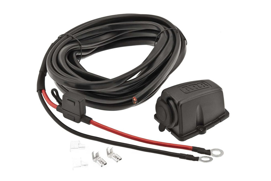 Included in the ARB Fridge Wiring kit are 2 x 1/4 side entry quick-connect terminals and insulators. These terminals (to be soldered at time of installation) are supplied loose to enable the installer to trim the cable to a suitable length and therefore provide the best conditions for the fridge by minimizing voltage drop. The rear terminals of the socket are identified with + and - for correct installation of the connectors.