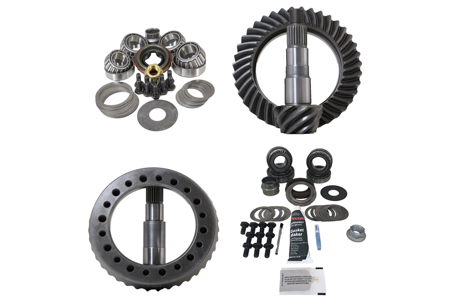 Gear Packages from Revolution Gear and Axle include Front and Rear Ring and Pinion Gear Sets and Master Install Bearing Kits.