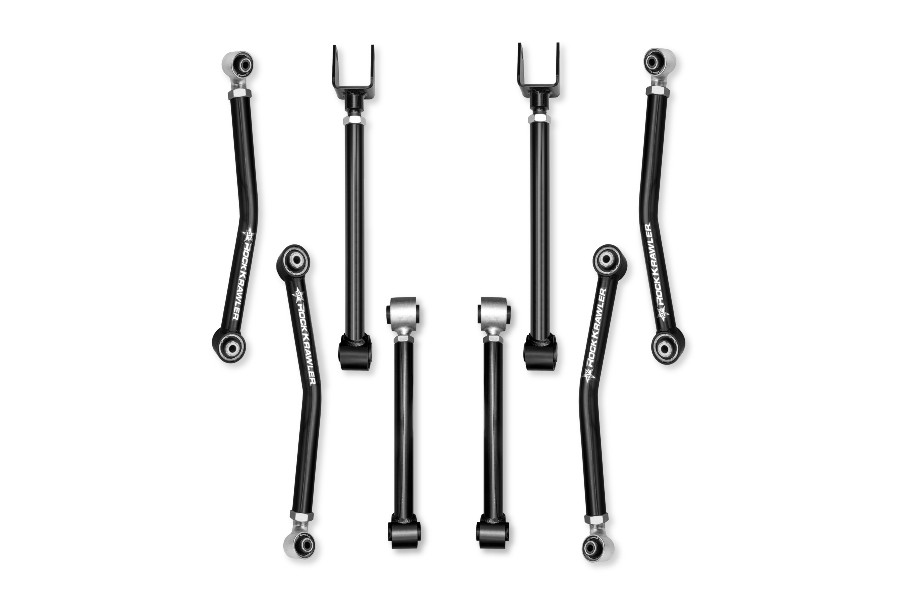 The Rock Krawler Adventure -X Mid Arm System Control Arm package was designed for those who want an easy bolt-in installation, excellent on-road ride and the durability and the off-road performance you expect from Rock Krawler Suspension. This kit features Rock Krawler’s proven, service free control arm joints. These joints are the industry leader in service free control arm joints using innovative technology to provide the best possible ride in your Wrangler. The Adventure - X lower control arms offer a total of 70 degrees of misalignment that greatly reduces the bind inherent in JL/JLU factory lowers, they are fully adjustable and paired with high misalignment adjustable upper control arms that let you precision tune your JL’s caster in the front and pinion angle in the rear.