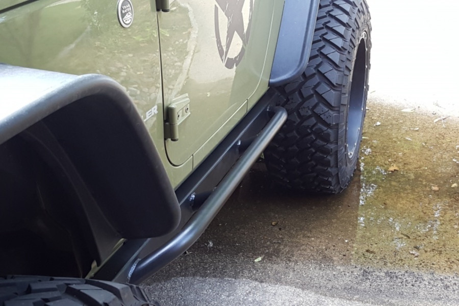Heavy duty, easy to install Heavy duty Rock Hard Patriot Series Rocker Guards Tube Style represent the ultimate in rocker guard upgrades for Jeeps and wheelers. You get all the advantages of low-profile factory rails in addition to a securely welded-on tube style step that facilitates exit from and entry to your Jeep. This spectacular Rock Hard Patriot Series Rocker Guards Tube Style also prevents your Jeep from scraping rocks by providing a powerful steel cushion capable of withstanding any kind of all-terrain abuse. Slider end caps are welded and sealed to stop dirt, water and debris from entering.