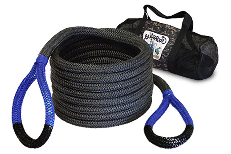 7/8" x 30' — This is the same great recovery rope as the original but only a few feet shorter. With a breaking strength of 28,600 pounds, this recovery rope is ideal for 4x4 trucks, Jeeps and SUVs. Comes with its own mesh duffle bag for easy carrying and storing. Length is determined before rope is under load.