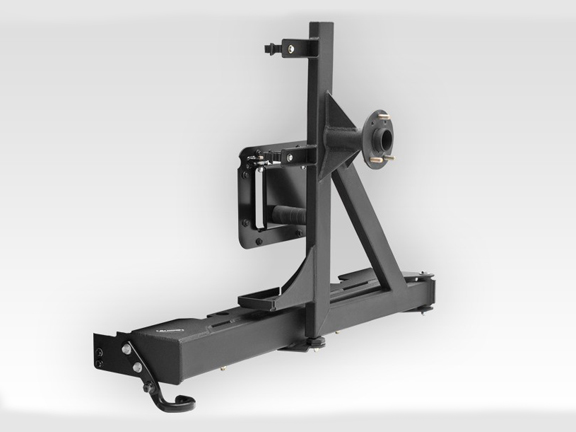 The new Rancho Rear Bumper Tire Carrier is made from textured black powder coated high strength 1/4" low alloy steel. The new bumper is designed to maximize ground clearance while maintaining the O.E. tow hook connection. The tailgate and swing out carrier move as one unit making access to cargo area quick and easy. Hi-Lift jack mount with quick release straps with room for a padlock secure your jack. The tailgate vent is covered by part of the opening mechanism while providing a CB antenna mount at the same time.