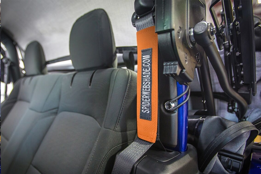 Quiet down those noisy flapping seatbelts when riding topless and doorless with SPIDERWEBSHADE SeatbeltSilencers! Easy to install and super functional.