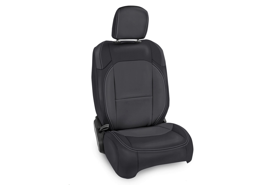 PRP’s Seat Covers for the Jeep Wrangler JL bring a whole new look to your interior. These covers have been expertly crafted to fit perfectly over your factory JL seats providing an OEM fit and finish. Made from durable marine-grade vinyl, they can handle the abuse from both on and off-road environments. The covers install over your stock upholstery, and are side impact airbag compatible. Sold as a pair.