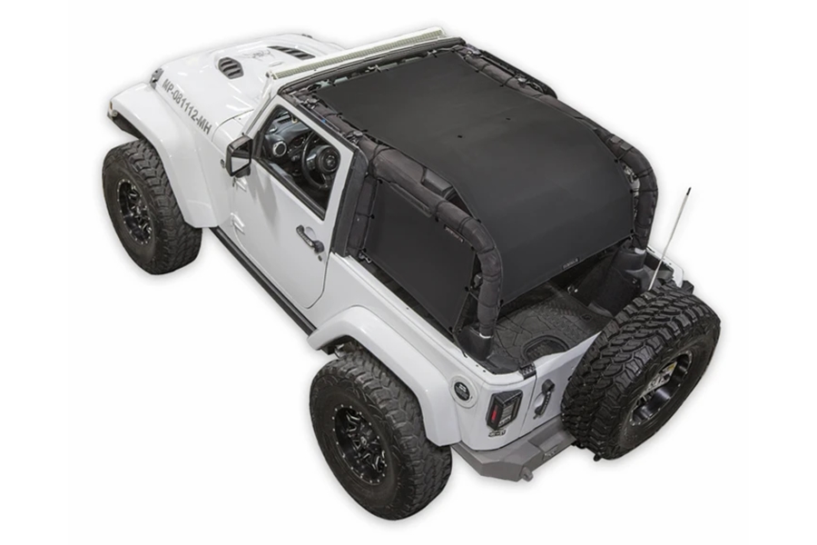 The JK2D ShadeCage is a 3 piece top system designed to bring the shade all the way to the back of the rear headrest keeping the suns harsh UV rays off the necks of your backseat riders. The JK2D ShadeCage also features right and left side panels to keep the sun and wind out and your kids, pets and gear in.