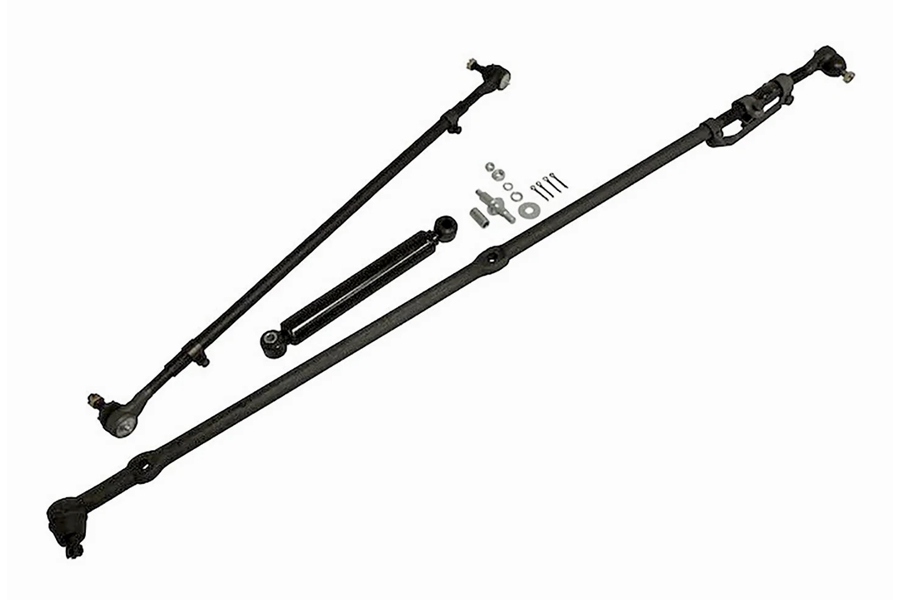 Crown Automotive's Steering kits are an affordable way to eliminate looseness in your old OE, worn out steering linkage. Included in each kit are all the tie rod ends, adjusters, and hardware necessary to mount the kit, as well as a steering stabilizer. All of our steering components are engineered to exactly match the factory design, so It'll be guaranteed to bolt in place of the OE steering without any hang ups. Each kit is backed by a 12-month warranty.