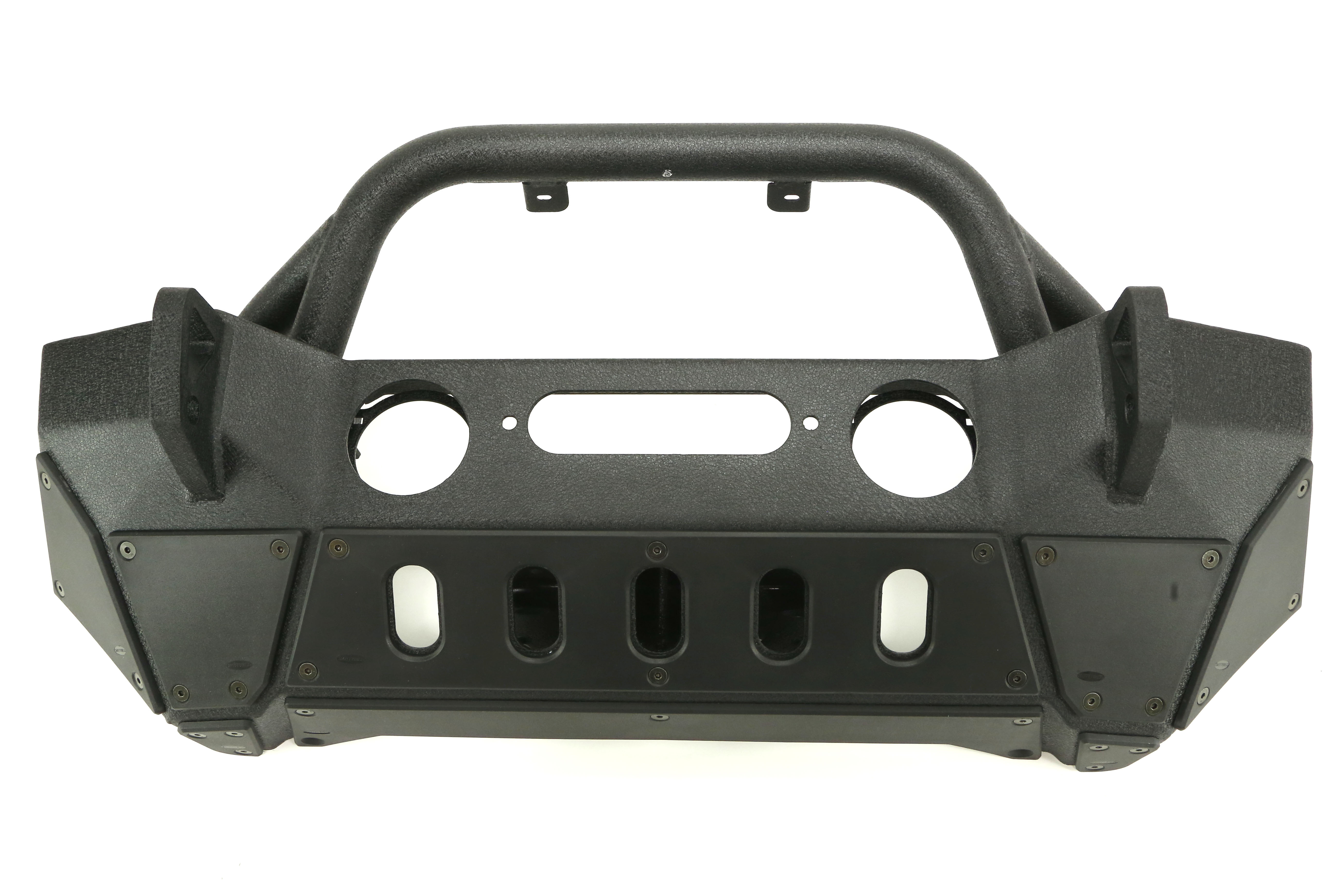 This front bumper looks great with its two-stage powder coated finish in black. It also provides a durable, effective bumper that features high-molecular-weight polyethylene. Constructed from cold-rolled 3/16" steel bars, this sleekly styled bumper is durable and ready for off-road travels.