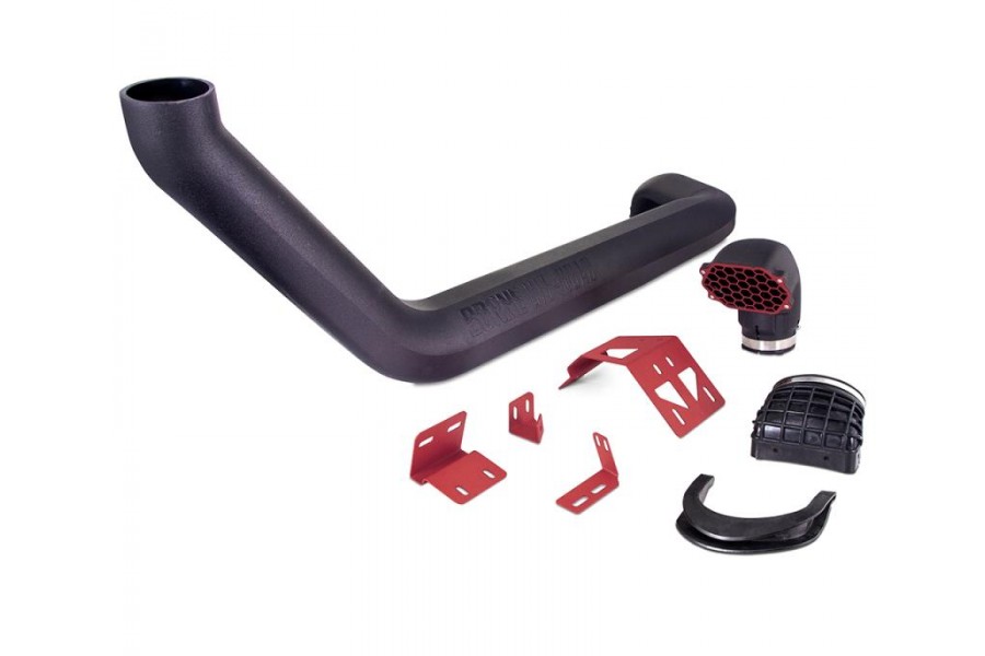Includes: (1) Borne Off-Road Snorkel Tube (1) Borne Off-Road Snorkel Inlet (1) Inlet Screen (1) Hood Bezel (1) Intake Duct (4) Mounting Brackets (1) Worm Gear Clamp (1) T-Bolt Clamp (1) Cut Guide Mounting Hardware This snorkel alone does not increase the vehicle's water fording limit.