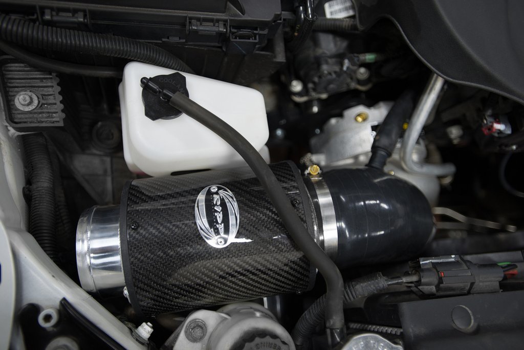 This carbon fiber sealed air box features a high-flow washable cotton element air filter internally.