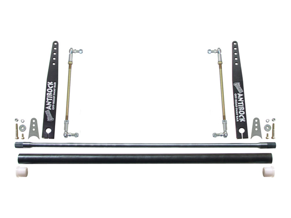 Description: Currie now offers Antirock® sway bar kits in a universal form for those building their own custom rigs and rock buggys. This universal kit features a 36" torsion bar length and 20" long aluminum arms that are Z bent for use in applications that require arm offset. Vertical links use a 14" long 1/2" x .20 RH/LH threaded rod that can be cut down to your desired length, and the necessary 1/2" x 20 thread heim joint rod ends, jam nuts, and tabs to weld to your axle tube are supplied. Also supplied is the universal weld-in 1.75" x .095 wall DOM tube that is cut to the proper length to work with the torsion bar length, and the Delron bushings to support the bar in the tube. The 45" bar is .800" diameter. These kits require fabricating for installation -- these are NOT bolt-o0n kits