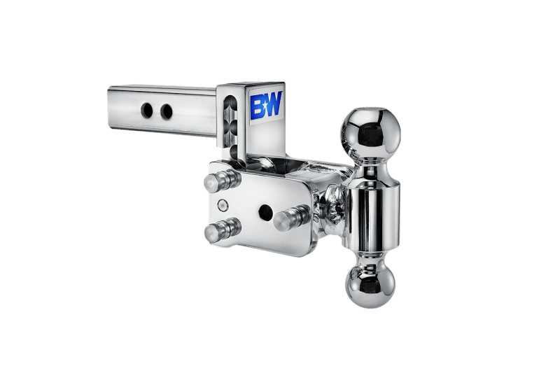 B&W Hitches Tow & Stow 2in Dual Ball Receiver Hitch, Chrome, 3in Drop-3.5in Rise
