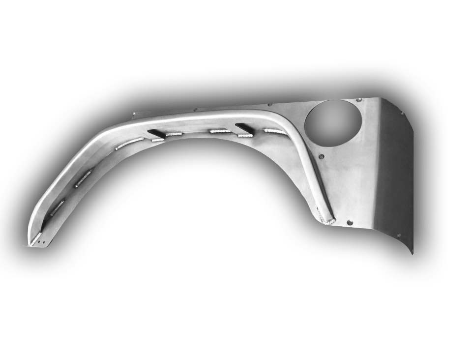 Crawler Conceptz Ultra Series Rear Corner 4-Door Armor is built for the off-road enthusiast who likes to play in the big rocks. The Rear Corner Armor is a key component in avoiding body damage to your Jeep. The Rear Corner Armor is laser cut from high strength 3/16" plate steel, then carefully roll-formed for a perfect fit to your Jeep’s body. Now combined with the Crawler Conceptz Ultra Series Rear Flare welded on as one piece that bolts on with a clean fit between the body and the corner. Includes cutouts for LED lights!