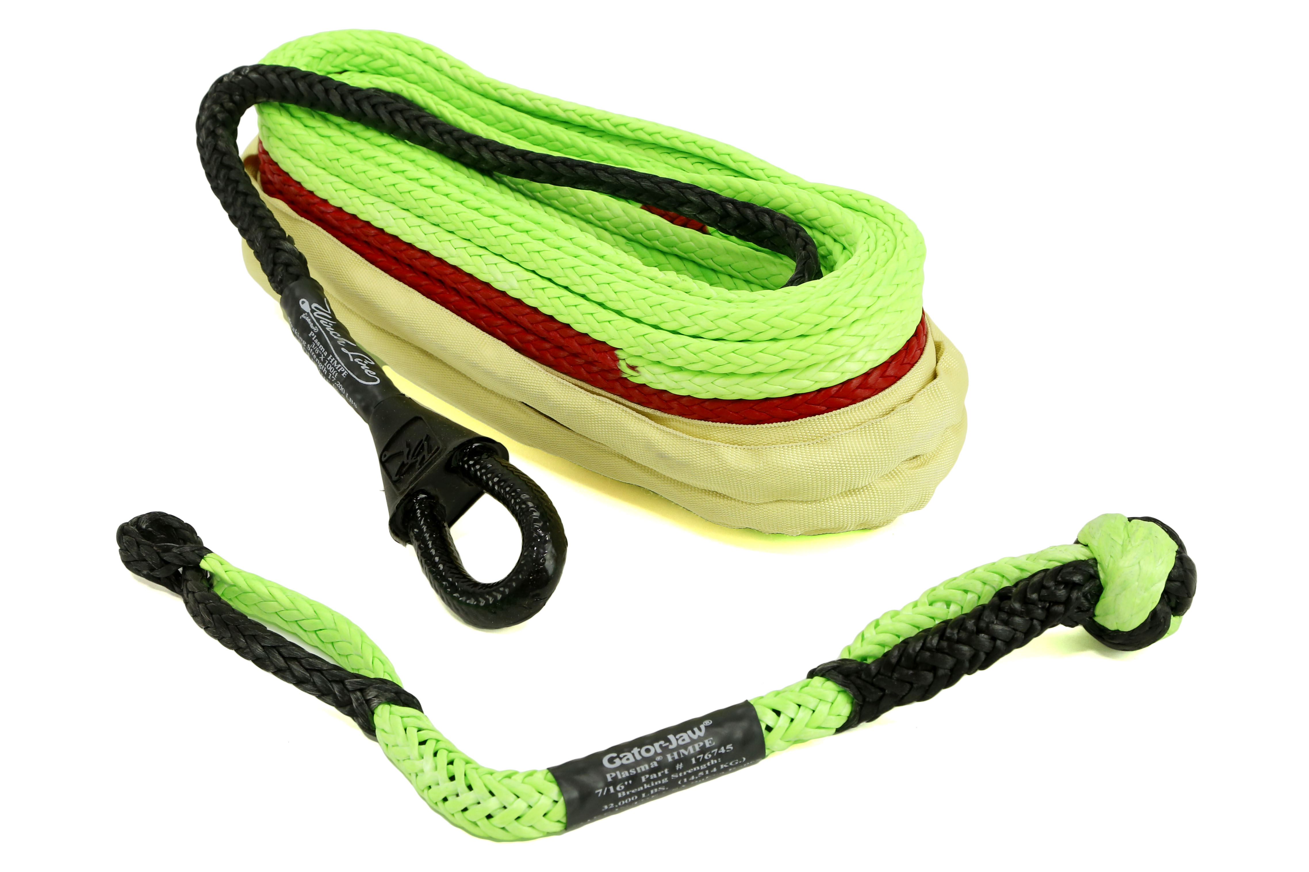 The Bubba Rope 100' Winch Replacement Line is considered to be one of the most advanced winch replacement line for steel, as well as other synthetic winch ropes. The rope is coated in heavy-duty Gator-ized vinyl armor which results in no line "fuzzing", and it provides better protection against abrasion, UV light, and dirt elements. The line is also color banded every 10 feet, so the user can gauge the amount of rope at any time. Additionally, a Gator-Jaw soft shackle, and removable Bubba Rope Life Guard is included for more protection.