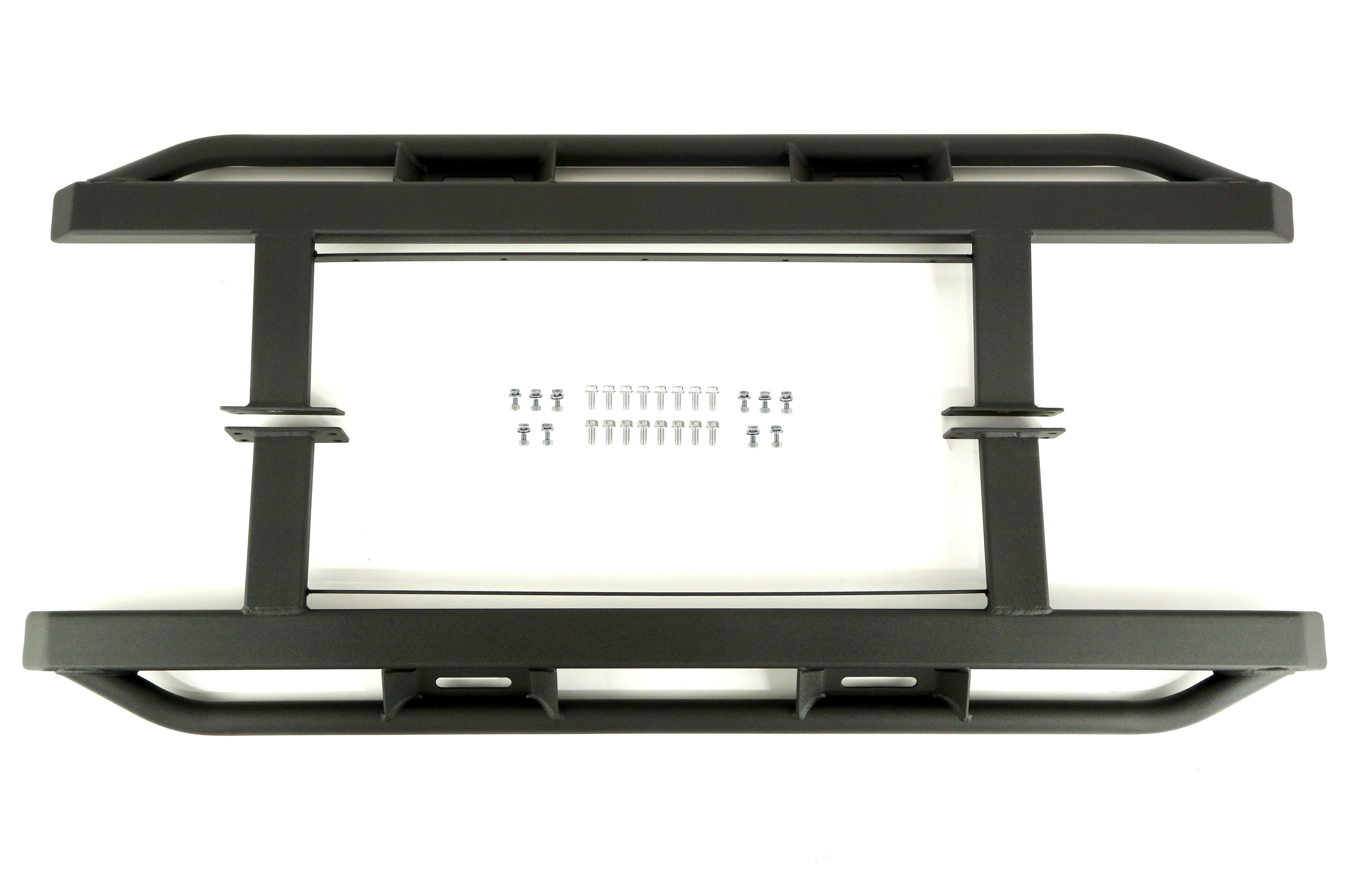 The JCR Offroad Classic Rock Sliders have been designed to provide your vehicle with maximum strength and protection to your vehicle.These have been crafted from 3 X 2 X 3/16” box tubing along with 1 ¾” angled round outer tubing.