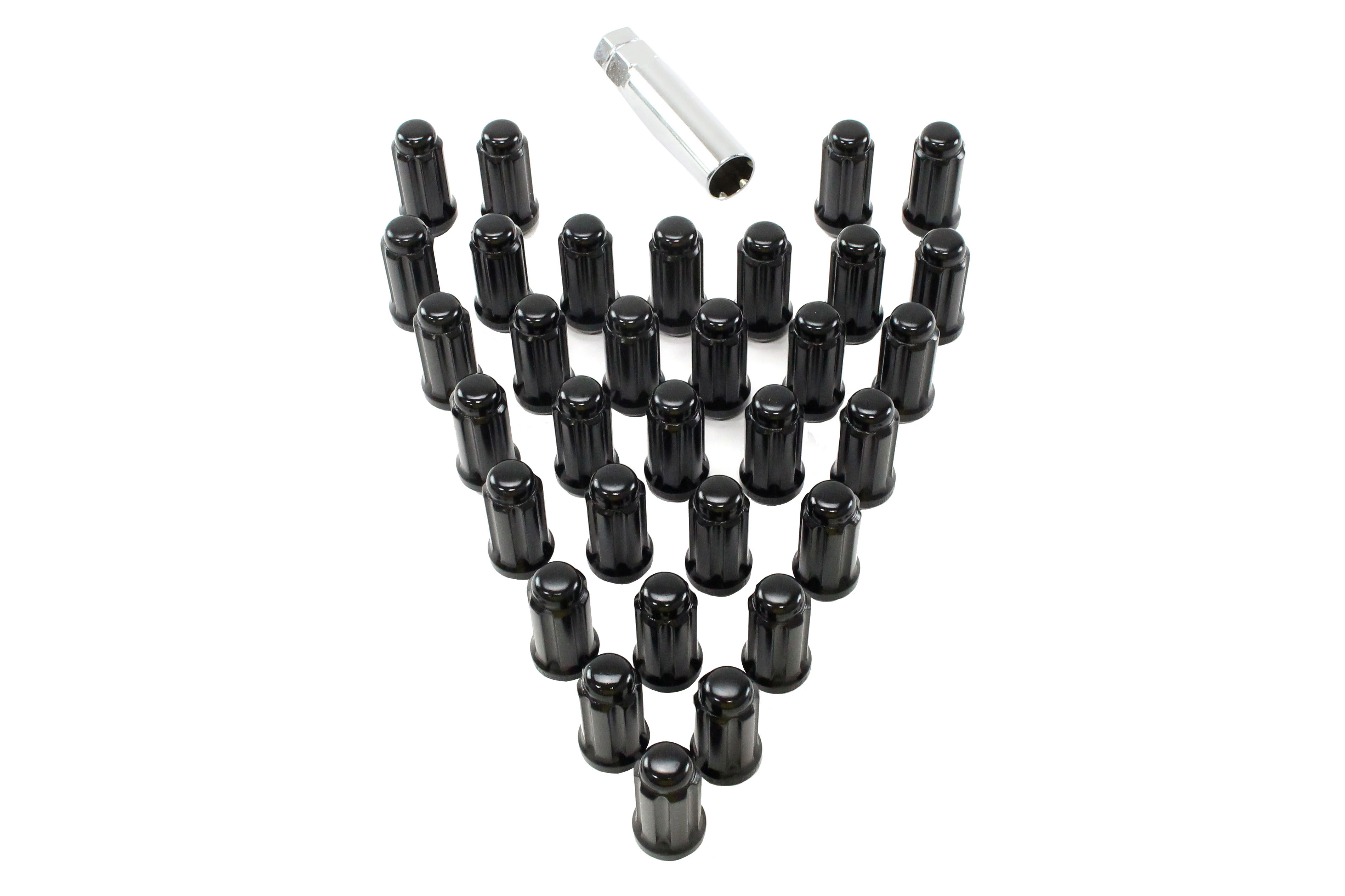 The Wheel Pros 9/16 Spline Close End Truck Wheel Lug Nut Installation Kit is a great way to secure your factory or aftermarket wheels. These lug nuts will come in a black finish which provides your vehicle with a cleaner look.