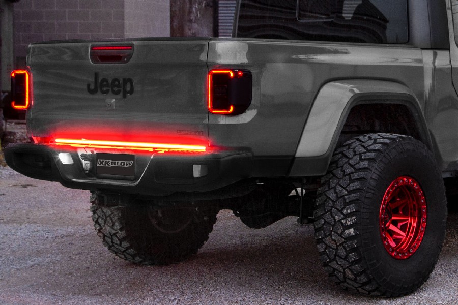 XK Glow’s newest Tail Gate LED Light Bar is finally here and man, are we excited! We packed the features into these. Of course, they hit on your typical 5 functions; running, turns, brake, reverse, and hazards. We stacked the brightest LEDs we could find as dense as possible to achieve a light saber-like glow. The bar is trailer detection friendly and does not require an additional module like most bars out there. Unlike our last generation, we made the bar one piece for a solid glow all the way across the back of the truck. The integrated sequential turn signals give your truck that premium look and gets you seen out there on the road. Install is a breeze with the included double sided tape and mounting brackets. The ultimate in truck tail gate lighting is here!