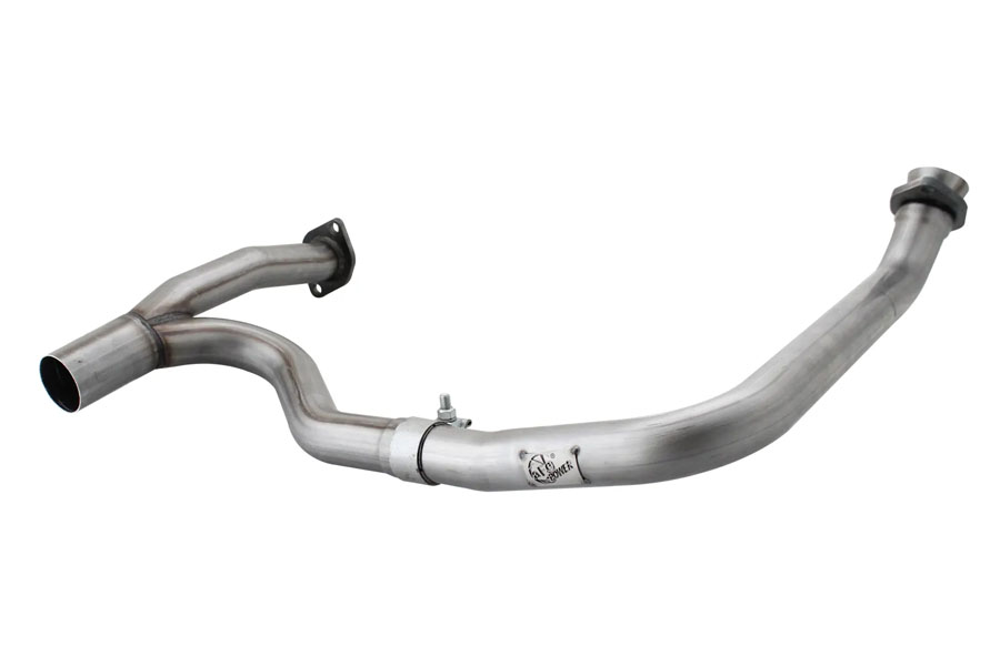 The aFe POWER Twisted Steel Jeep "y-pipe" is designed to connect the stock catalytic converter with either the stock exhaust or aFe POWER's MACH Force-Xp exhaust system. Designed also to accommodate aftermarket lift kits, this y-pipe features 2 x 2" into 1 x 2 1/2" stainless steel mandrel-bent tubing with OE flanges and 100% hand-MIG welded construction that resists corrosion. To eliminate dead space that can cause turbulence and hinder flow that formed collectors are prone to produce, a true merged collector is used. The smooth curves and increased diameter helps remove restriction and keeps exhaust gas flowing smoothly for improved performance and durability on and off the trails.
