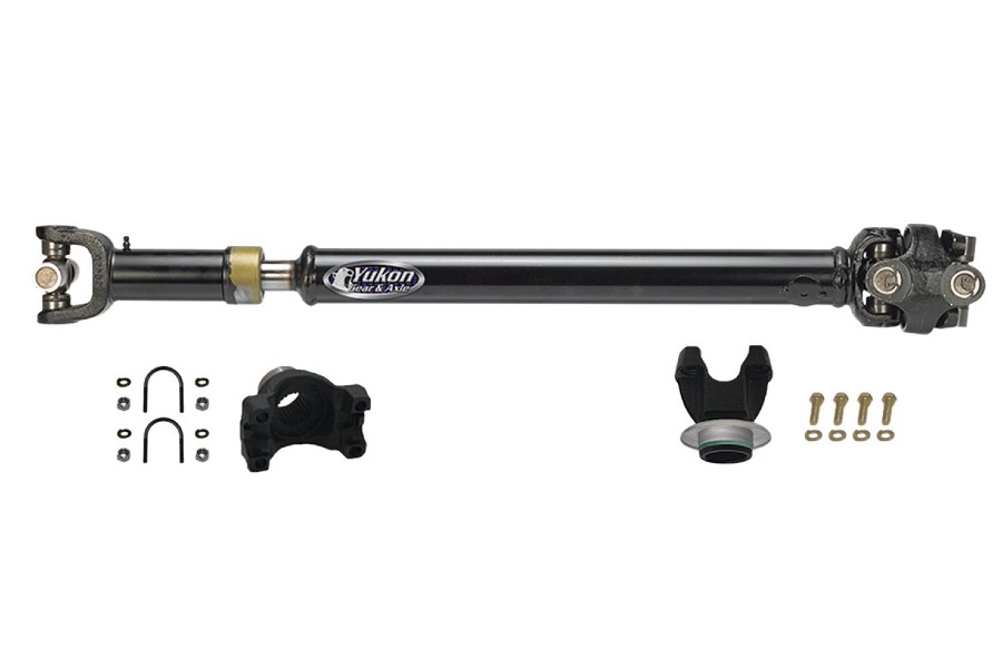 Includes Pinion Yoke, Transfer Case Yoke, and Retaining Hardware. Recommended up to 35" Tires, Fits stock to 4.5" Lifts, Long arm kits and lifts over 4.5" need to have the driveshaft measured to verify fitment.