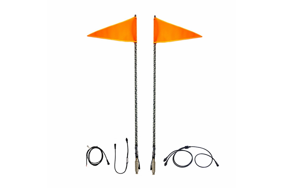 Whip Lights can illuminate the way and ensure other vehicles on the trail can see your Jeep or 4x4. Visibility is crucial in off-road situations like sand dunes, where proper lighting can help prevent potential collisions. In addition, many sand dunes require your vehicle be equipped with whip flags to ensure safety of all, Whip Lights take this visibility to the next step, combining a whip flag with bright LED lights. Whip Lights are ideal for ensuring your vehicle is seen by others on the trail, as they can stand up to 6 feet tall, come with an included flag, and offer vibrant lighting. We also offer Whip Light Mounting brackets, making it easy to install your new lights and get your rig ready for adventure.